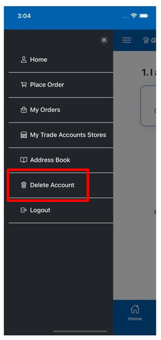 In order to delete your Quick trade orders app account, click the account icon at the bottom menu bar and then Press “Delete Account”